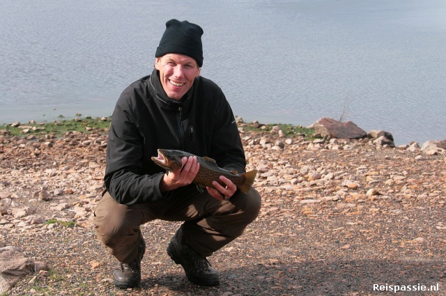 Nu gaat het lekker met de forellenjacht vandaag weer een paar gevangen! (Mochten allemaal weer zwemmen!)