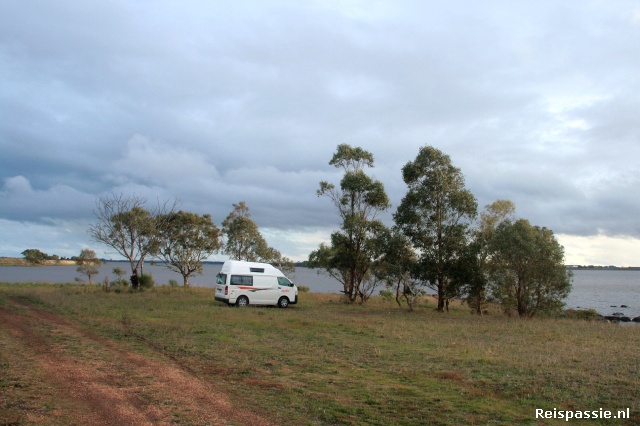 Er viel zoveel regen in de Grampians dat de rivieren het allemaal niet meer verwerken konden. Enorme delen van wegen, bruggen en rivieren zijn weggeslagen. Op dit moment is alleen nog het noordelijke deel te bezoeken. De rest, zo'n 75% van het park is afgesloten. We moeten dan ook een stukje omrijden om er te komen. De logische toegangsweg is ook nog steeds gesloten. Maar er is gelukkig genoeg over om te bezoeken. Bij het visitor center hebben ze keurige info van wat er wel en niet toegankelijk is. En een fotoboek waarom de rest afgesloten is. Je weet niet wat je ziet, enorme ravage. Wat mooie wandelingen gemaakt in het park. Bij eentje richting een waterval zie je hoe enorm het is tekeer gegaan. Er hangt een infobord met een foto van de kreek voor de regen. Leuk stroompje van een meter of twee breed tussen de enorme varens. Nu is het een kompleet platgewalste bende van een meter of 25 breed. Vol met omgevallen bomen. Het loop bruggetje naar de waterval hangt dertig meter lager in de bomen. In plaats daarvan hebben ze nu wat stapstenen in de rivier gelegd. Want inmiddels is 'het gewoon weer een lieflijk stroompje...