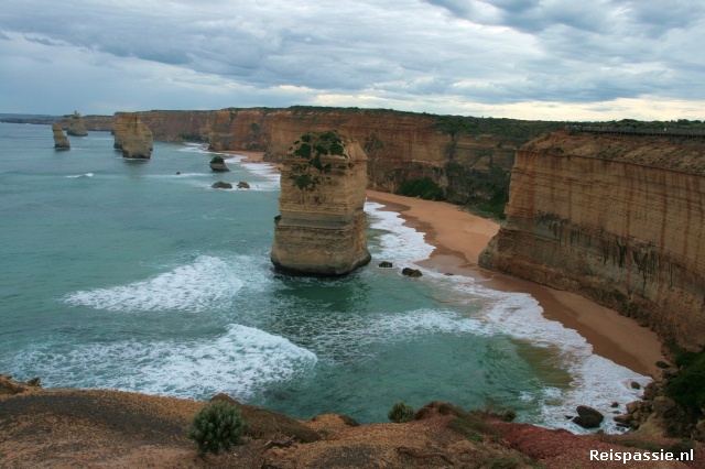 De bekendste spot langs de route zijn de “Twaalf Apostelen”, twaalf rotsen in zee. Het zijn dan wel gewoon twaalf enorme stukken steen die de kracht van de oceaan tot nu to hebben weerstaan maar toch is het een bijzonder gezicht. Geel-bruine steen in die kolkende oceaan. En het is heel multiculti ook. 90% van de bezoekers is Aziaat. En kennelijk gaan die allemaal graag met wat rotsen op de foto. Heel grappig, er wordt geen foto gemaakt zonder dat er een familielid op de voorgrond staat. En minutieus uitgemeten!