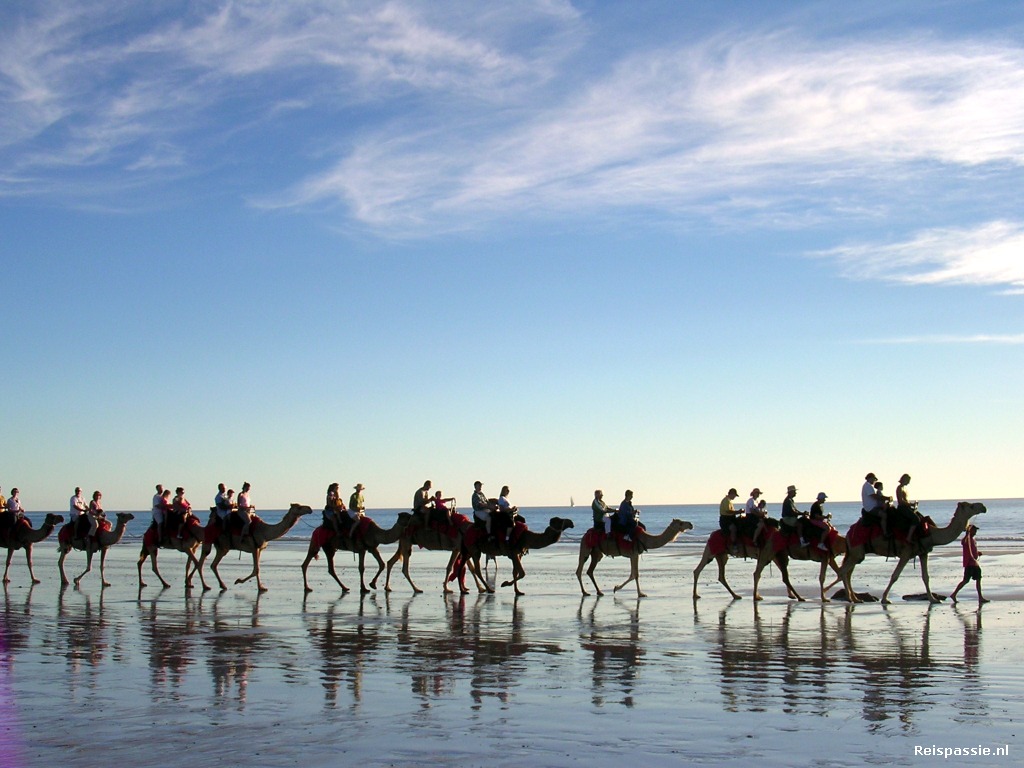 Van de 80 mile beach gaan we naar Broome. Een klein stadje aan de kust. Maar erg populair bij de zonliefhebbers. Het is zo druk op de campings dat ze helemaal een soort overloop hebben op de plaatselijke sportvelden. Maar dit betreft vooral de caravans en campers en voor ons ieniminie tentje zonder "power" is altijd wel plaats. Dus we kunnen nog ruimschoots in de backpackershoek staan. Gezellig naast een stel laatbloeiende hippies met VW combibus en de hele dag Jimi Hendrix op de radio.