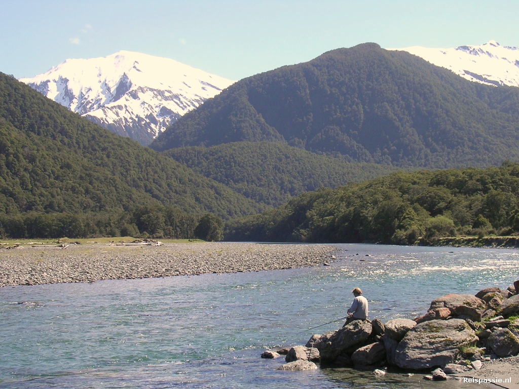 Vandaag ons karretje bij Lake Paringa neergezet, een mooi plekje om weer te wildkamperen. Het enige nadeel hier aan de westkust zijn de steekvliegjes. Ze noemen ze hier sandflies omdat ene Captain Cook ze ooit zo genoemd heeft maar die benaming is niet helemaal juist want ze lijken niet in de verste verte op de irritante strandbewoners die je in Azie nogal eens ziet. Maar what's in a name. Ze zijn erg irritant. En erg dom. Je mept ze namelijk zonder al te veel moeite naar de eeuwige jachtvelden. Alleen er zijn er zo ENORM veel. Hele wolken achtervolgen je als je bijvoorbeeld even staat te vissen. Even het schuifdeurtje van de camper open en dicht heeft gelijk tot gevolg dat er een tiental nieuwe bewoners zijn. En die zitten even later dus geplet tegen de ramen want we gaan gelijk op jacht.