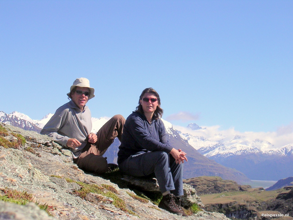 Aangezien we vlakbij overnacht hebben zijn we er lekker vroeg en zijn er dus ook nog geen andere wandelaars. De wandeling gaat wederom een berg op. Door lage kronkelbosjes en langs ruige rotsen. Op de top heb je een prachtig 360 graden uitzicht. De meren, de witte toppen van de bergen rond Mt. Aspiring, het is een prachtig uitzicht. In totaal iets van drie uur over gelopen.