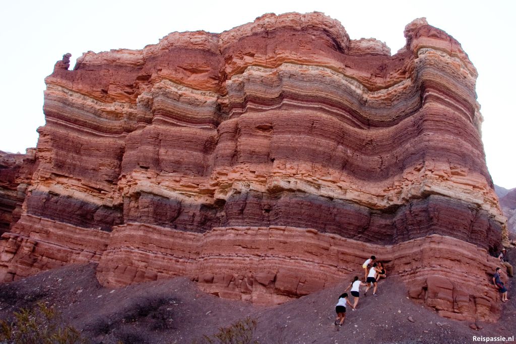 Het doel is de Quebrada de Cafayate. Het landschap langs de rivier met de prachtige vormen en kleuren. In totaal strekt het gebied zich uit over vijftig kilometer. We gaan een stuk of zes bijzondere plekken langs. Elke keer met een wandeling door het gebied. Het landschap is schitterend. Al die verschillende kleuren. We zijn om drie uur 's middags vertrokken en naar mate de zon verder zakt worden de kleuren steeds warmer. Weer veel te veel foto's geschoten. Wordt een hele uitzoek klus...