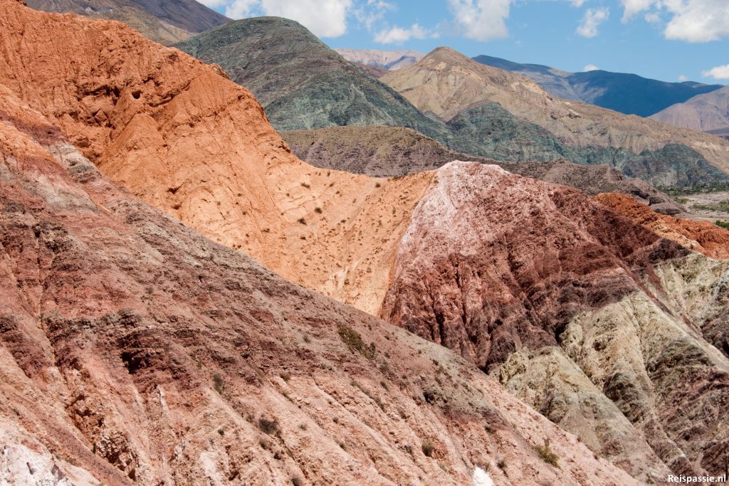 De dag er op een bus gepakt naar een dorpje in de buurt; Purmamarca. Het dorpje ligt pal tegen de “Cerro de siete colores”, de rots met de zeven kleuren. Het is inderdaad een pracht gezicht, de kleuren spatten er gewoon van af. Naast de gekleurde rots ligt een groene vallei, mooi contrast.