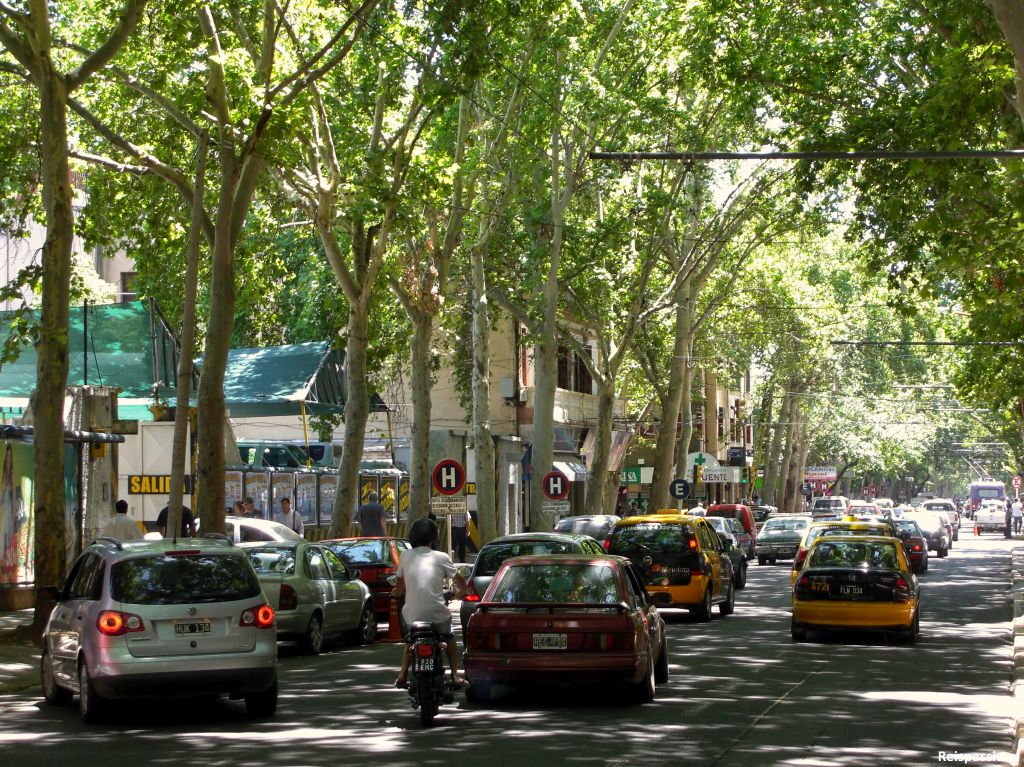 De omgeving van Mendoza is een en al wijn. Ze zijn hier goed voor 70% van de Argentijnse wijnproductie. We blijven twee dagen in Mendoza. Eerst een dagje de stad in. Het meest opvallende zijn hier de brede straten en vele bomen in de straten. De bomen zorgen er voor dat het goed vertoeven is want zonder de schaduw van deze jongens zou het in deze gortdroge omgeving niet uit te houden zijn. Het is aan een aardbeving van een honderdvijftig jaar geleden te danken dat de stad er zo ruim en aangenaam uit ziet. Toen werd alles verwoest en omdat men een vervolg beving niet uitsloot moest de nieuwe opzet veel ruimer worden met brede straten en veel parken om een plek te geven aan de bevolking om te schuilen. Goed gedacht van de mannen want het maakt het nu heel aangenaam. Er is een heel irrigatiesysteem vanuit de Andes om de stad en alle wijnvelden van water te voorzien. Zonder dat water zou er echt niets groeien.