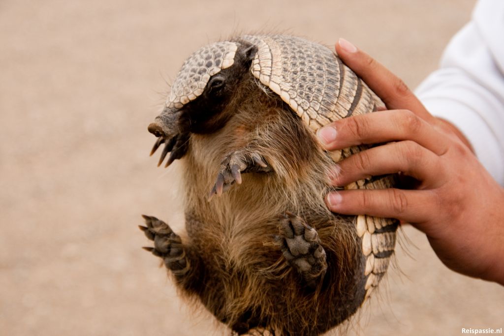 Na wat hilarische duiken waarbij hij mis grijpt heeft hij hem uiteindelijk te pakken. Het blijkt een gordeldier te zijn. Even getoond aan iedereen en daarna een stukje weg van de weg weer laten gaan. De plekken waar we stoppen om te tanken of als toilet/eet break zijn allemaal een paar huisjes in de bekende “middle of nowhere”. Hier woon je echt afgelegen. Vaak is het eerstvolgende gehucht 300 kilometer verderop.