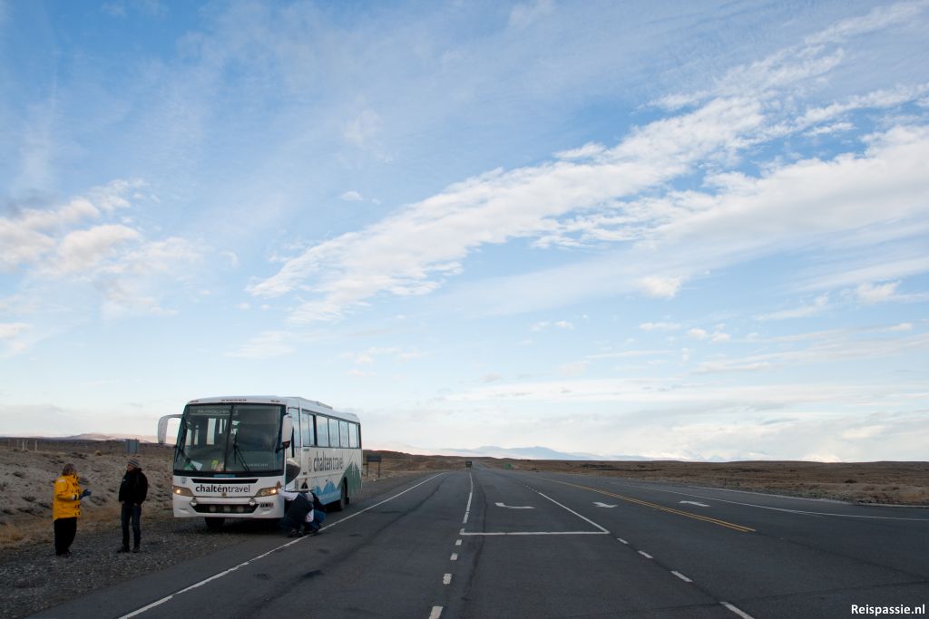 De historische onverharde weg is overigens vrijwel verleden tijd. Driekwart is inmiddels geasfalteerd, de rest is in aanbouw. We reden echt UREN langs stukken weg in aanleg. De eerste dag in Perito Moreno (het plaatsje) overnacht. Dag twee weer meer van hetzelfde. Nu iets van acht uur op pad. Wij gaan er eerder uit dan de rest van de passagiers. De meeste gaan door tot Bariloche, nog een uurtje of vier verder.