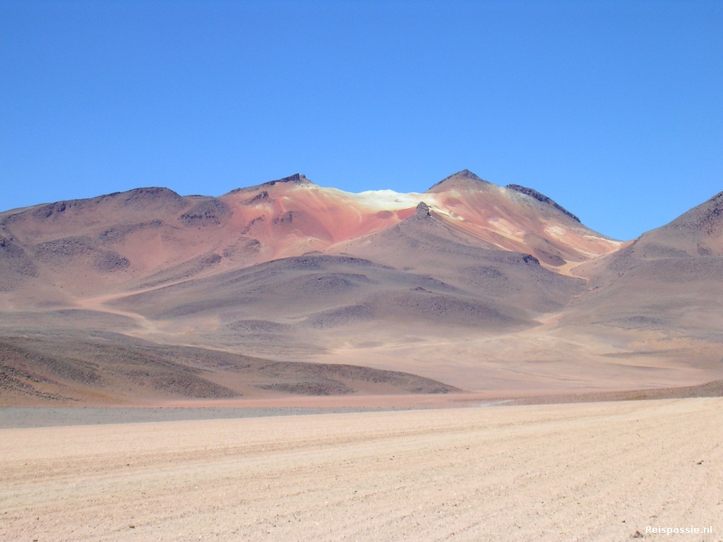 Nog altijd rijden we door wat een eindeloze woestijn lijkt. Maar hij is er weer niet minder mooi om. Vandaag moeten de meeste kilometers afgelegd worden en zullen we langer in de auto zitten. De eerste stop is bij het dal van een felgekleurde vulkaan waar de vicunas in de verte rennen. Dit roept altijd fotoaspiraties op, maar zodra je in de richting van deze gezellige huppelaars gaat nemen ze gelijk de benen. Veel foto's van Vicunakontjes dus...