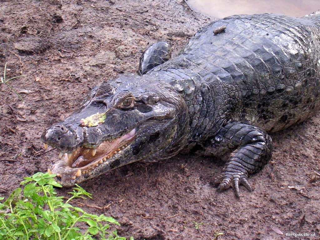 We stoppen nu bij een ander kamp van Inca Land, de organisatie waar we mee op pad zijn. Ze hebben ook een nieuwer kamp met wat meer luxe maar dat was duurder en dus zitten wij in het andere kamp. Maar we gaan er nu wel eten. Er blijken nog twee reizigers te zitten die vandaag aan hun trip zijn begonnen en het is kennelijk gemakkelijker om voor ons allen tegelijk te koken. We hangen eerst alles een beetje te drogen en maken een praatje met het andere stel. Ze komen uit Australie en Zuid Afrika en hebben het duidelijk even gehad door alle muggen en de vele regen. Maar na een lekkere maaltijd gaat het al weer beter en we hebben een gezellige avond. Bij dit kamp zit een grote alligator die kennelijk goed in de gaten houdt of er etensresten de rivier ingaan. Onze Sabina lokt hem als een Boliviaanse versie van Steve Irwin uit het water en speelt een beetje met hem. Hoewel hij ook met grote sprongen naar achter moet als de croq wat al te enthousiast wordt. Hoog in een boom naast het kamp zit opeens een toecan. Deze prachtige vogel met een felgekleurde snavel (bekend van het Van der Valk logo) is behoorlijk zeldzaam en het is prachtig dat we er een zien. 's Avonds varen we weer terug naar ons eigen kamp. Sabina is z'n zaklamp vergeten en in het donker heeft de rit veel weg van een achtbaan. Zo hard mogelijk tussen de bomen door, gelukkig weet ie aardig de weg.