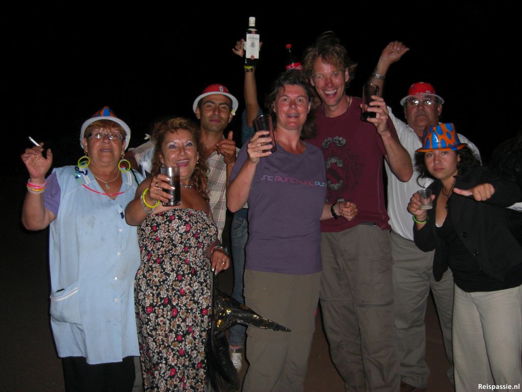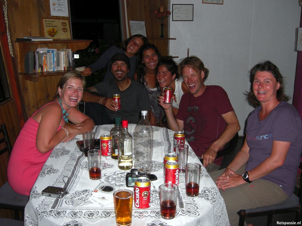 En dan is de newyearseve partynight! De barbecue staat al een tijdje te roken en iedereen verzamelt bij het eten. Er is echt mega veel; vlees, vis, salades en pisco en wijn. Is een heel gezellige avond geworden. Middernacht de straat op gelopen waar iedereen zich verzamelt. De mensen van het eiland zingen en staan met lichtjes te zwaaien. Het enige vuurwerk komt vanuit het dorpje waar centraal wat wordt afgestoken. Niet veel, maar hey..., wel vuurwerk! Na de nodige gelukwensen in diverse talen teruggelopen richting hostel. Met de nodige drank op tafel een gezellige nacht gehad.