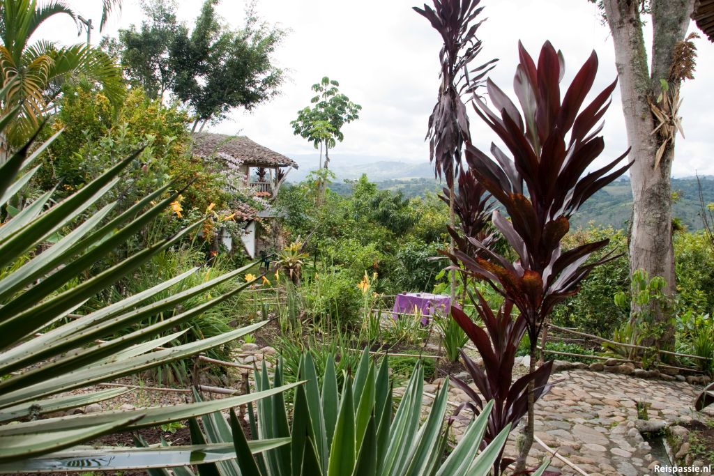 In San Augustin hebben we weer een plaatje van een hostal. Vrij basic, maar zo mooi gelegen op een heuvel naast het dorp. Je kijkt uit over de wijde omgeving vanuit de prachtige tuin vol bloemen en bomen vol mandarijntjes. Het is van een Fransman en ze verbouwen ook nog eens hun eigen groente en bakken hun eigen brood dus; heerlijk eten!