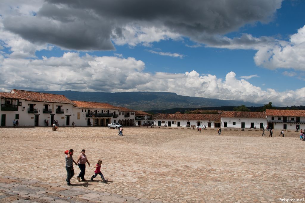 Villa de Leiva heft het grootste plaza van Colombia. Zijn ze hier heel trots op. Het is een geheel open plein, ook volledig voorzien van de keien als plaveisel. Mooi plaatje.