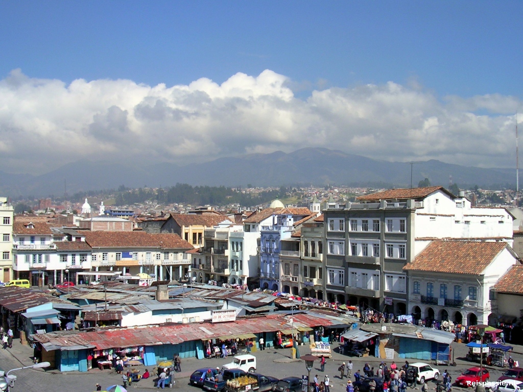 Cuenca is de derde stad van Ecuador en heeft een mooie oude binnenstad. Het geheel staat inmiddels ook al op de Uneso lijst. De hele middag rondgezworven en uiteindelijk op het plaza in het zonnetje wat gezeten. Het is een heel fraai plaza waar je continu muziek op de achtergrond hoort uit luidsprekers tussen de bomen, van pianogepingel tot salsa! Het komt hier overigens ook weer wat welvarender over dan in Peru. De duizenden taxi's uit de Peruaanse steden zijn weer vervangen door prive auto's waarvan er opvallend veel nieuwe rondrijden. Ook veel luxe kledingzaken.