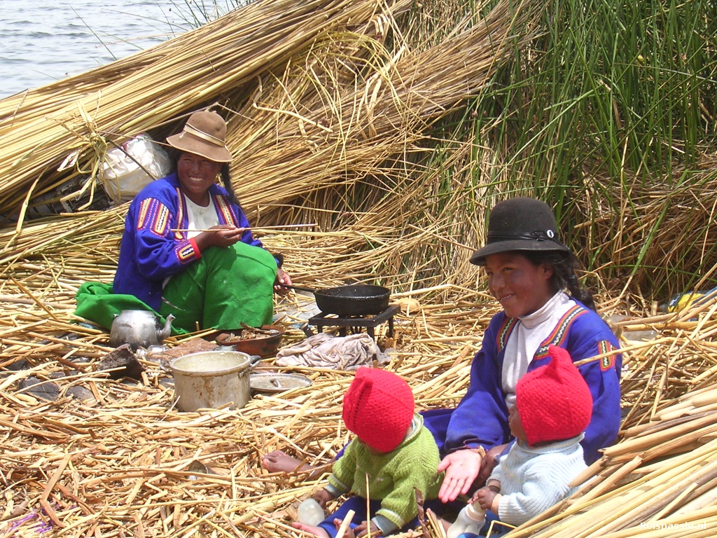 Puno ligt ook aan het Titicacameer en heeft een aantal drijvende rieteilandjes voor de kust waar de Uros bevolking woont. We gaan met een tripje een aantal van die eilandjes langs. Het zijn kleine eilandjes die met ankers op hun plek worden gehouden. Op een eilandje staan een aantal huisjes van riet waar de mensen in wonen. We kunnen op de eilandjes rondkijken. Het deinende gevoel van het riet is wel grappig maar verder is het wel een erge toeristische boel. Zeg maar Marken in Peru. Veel souvenir handel. Maar toch wel een leuke ochtend gehad want het was heerlijk weer om met het bootje rond te varen op het meer.