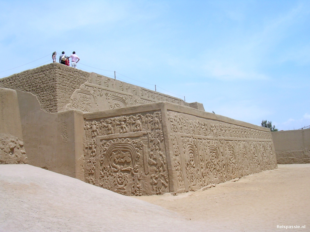 Vervolgens naar de tempels van Chan Chan. Deze tempels zijn gebouwd door de Chimu. Zij leefden in de periode tussen de Moche en de Inca's. Op het hoogtepunt van het Chimu rijk hebben er iets van 60000 mensen in de steden om de tempels heen gewoond.